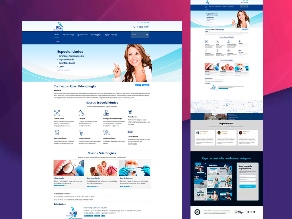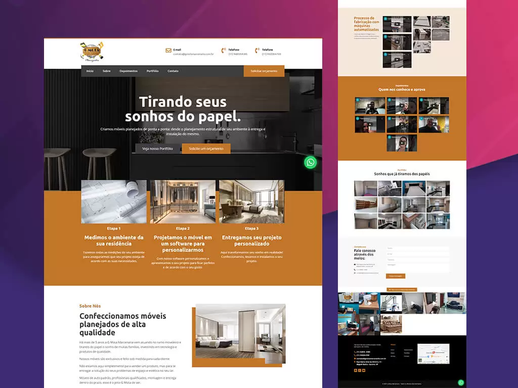 "Meu site antigo não era adaptado para dispositivos móveis, o que me fazia perder algumas oportunidades e complicava a apresentação de nossos serviços e produtos aos clientes. Agora, ficou mais simples manter e atualizar o site, e dá até gosto de exibi-lo."